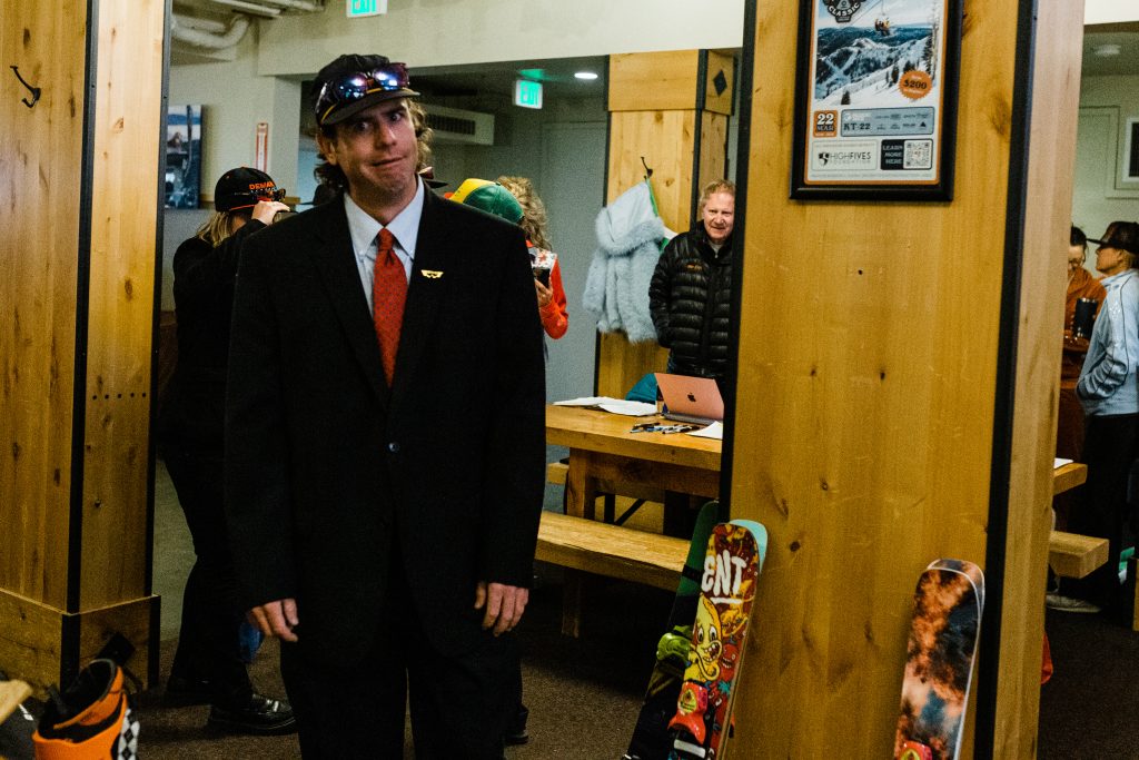 As ski patrol guided competitors and assembled them at the starting point, spectators, who grow in numbers each year, gathered around the finish line with colorful signs, cowbells, and squeaky rubber chickens.