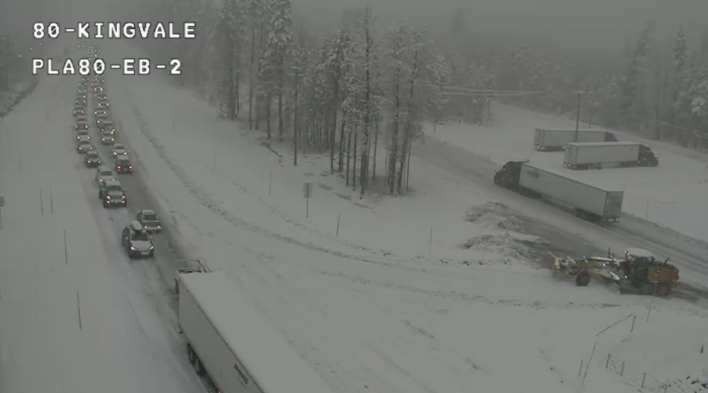 For eastbound traffic, chains are required on all vehicles except 4-wheel-drive vehicles with snow tires from Kingvale to Truckee.