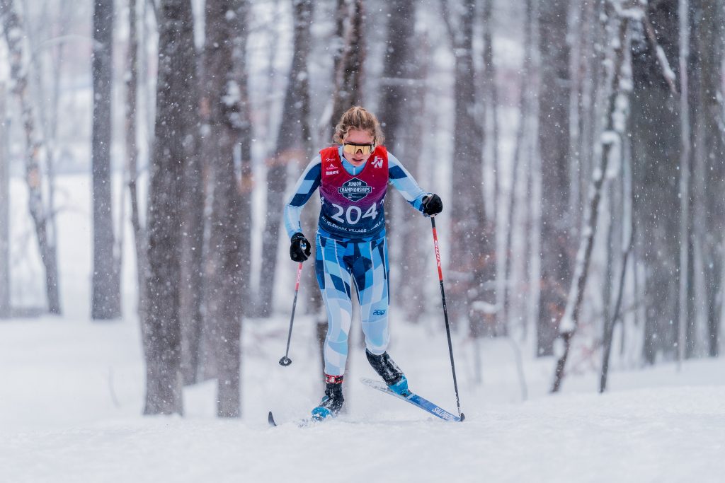 Day three brought some of the toughest conditions of the week, as athletes faced a full blizzard during the classic mass start. It was the longest race of the championships and one that demanded real grit. The U18 athletes were first on course and had the brutal task of breaking trail through fresh snow, making an already difficult race even harder. Nonetheless, Raegan Czeschin and Aili Scott battled their way into the top 10, with Raegan finishing fourth and Aili seventh, both in podium contention the entire race.