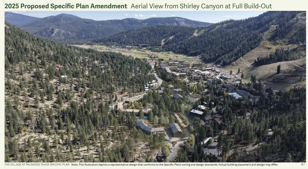 The legal challenge ended in a settlement with agreed upon reductions that are now being incorporated through amendments to the development plan, known as the Village at Palisades Tahoe Specific Plan.