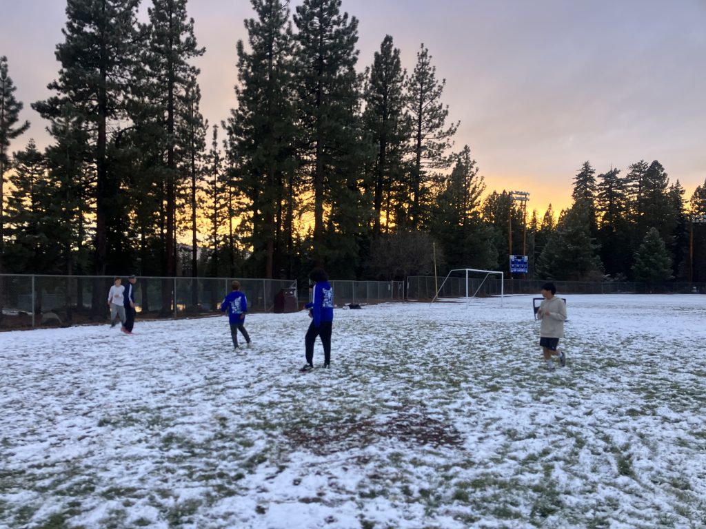 TAHOE CITY, Calif. – For many youth soccer teams, winter weather means canceled practices or a move indoors. But when the Mega Knights, North Tahoe’s U14 American Youth Soccer Organization team, were unable to secure an indoor training space and a tournament loomed close, the players bundled up and took the field anyway — snow and all.
