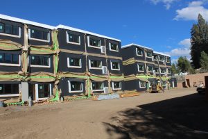 Because the site utilizes modular construction, the construction is expected to finish and be occupancy-ready by summer of next year. The next steps include laying down curbs and asphalt, as well as finishing the roofing, so internal work can continue throughout the winter.