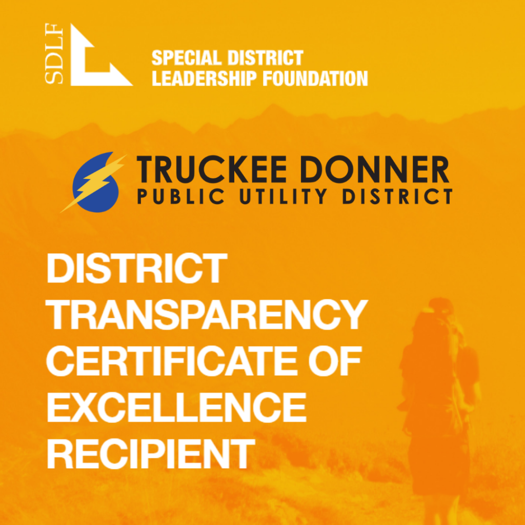 TRUCKEE, Calif. —Truckee Donner Public Utility District has been awarded the District Transparency Certificate of Excellence from the Special District Leadership Foundation, in recognition of its outstanding efforts to promote transparency and good governance.