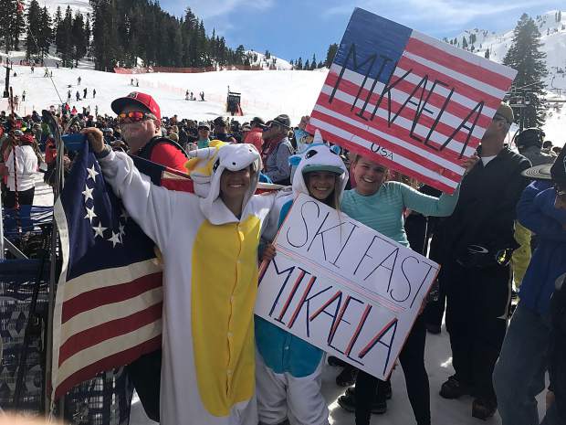 I had the pleasure of meeting Squaw local Julia Mancuso’s fan club on Saturday — three awesome young ladies shouting for Shiffrin’s victory while dressed in matching unicorn onesies, of course.