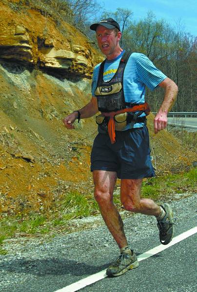 Four hours and 34 minutes into the race, the first four racers emerged from the woods, crossed a curvy highway and hustled up a hill beside a small waterfall. Jim Nelson, who completed the 100 in 2004, had bloody cuts all over his legs.
